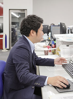 営業担当から依頼された設計図面を基に、お家を建てるために必要なサッシや建材を拾い出し、専用システムで見積作成を担当します。
