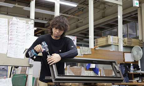 本社工場にて、窓サッシや玄関ドアの組み立て業務を担当していただきます。電動工具などを使用しながら部材を伝票や図面に基づいて加工・組立し、一つひとつ丁寧に品質の高い製品づくりを行っています。未経験の方でも丁寧に指導しますので安心です。